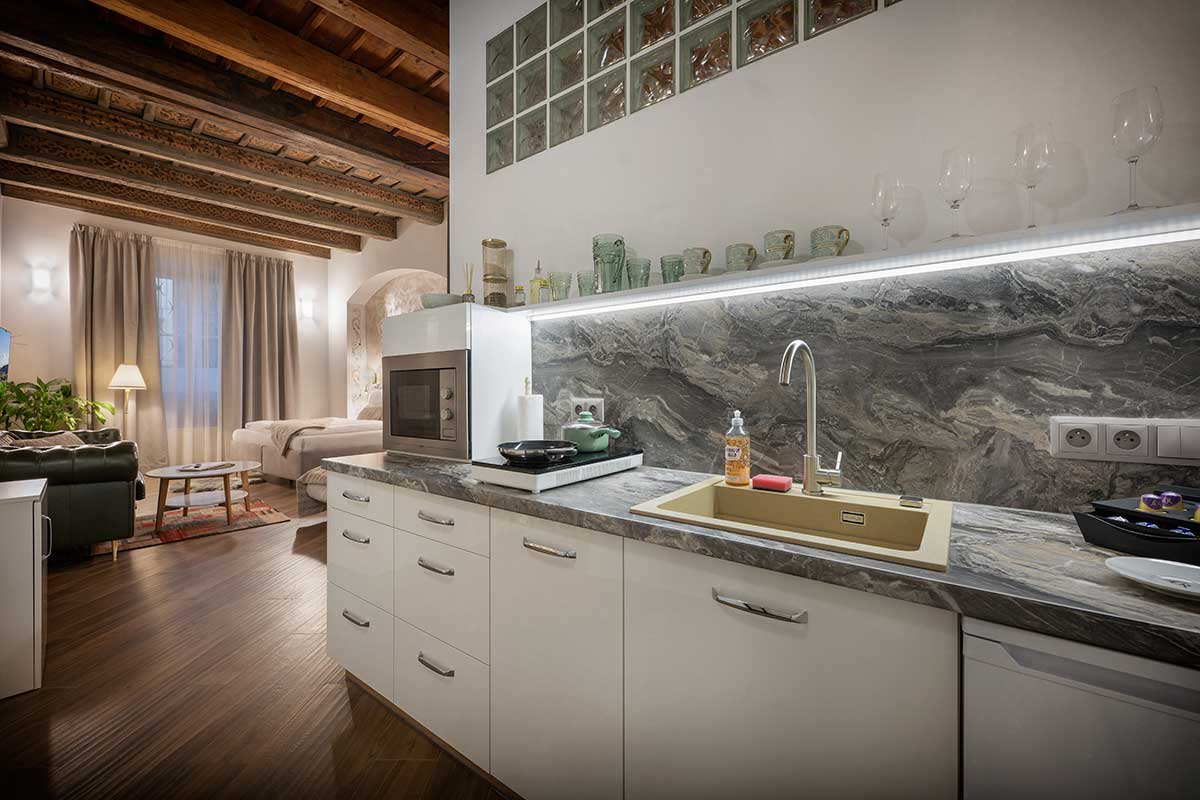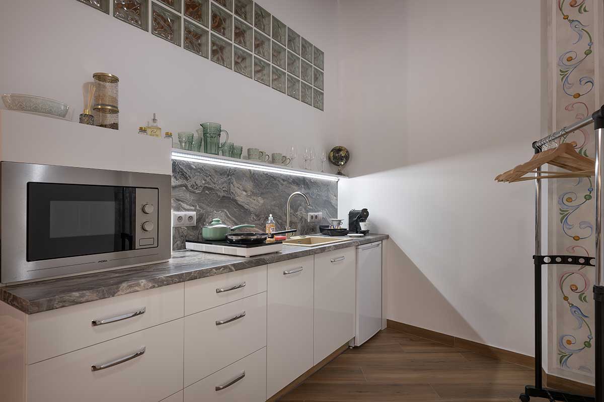 - Fully equipped kitchenette with coffee maker and dining corner