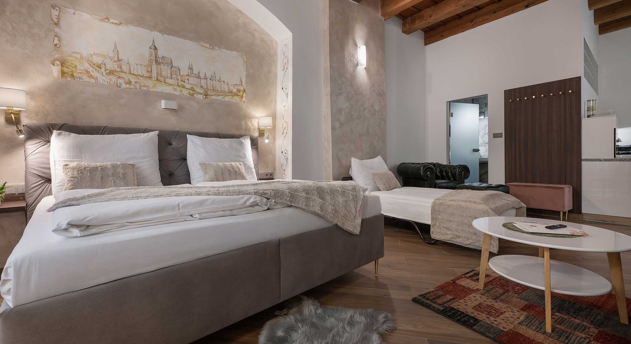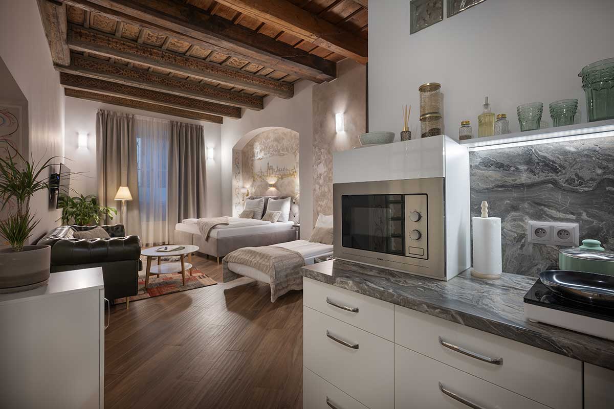 Immerse yourself in the romantic spirit of Czech music in the Antonín Dvořák Apartment, a warm and elegant space inspired by the beloved composer of New World Symphony and Slavonic Dances. Designed to celebrate the harmony of music, nature, and home, this apartment offers a peaceful, lyrical retreat in the heart of the city.