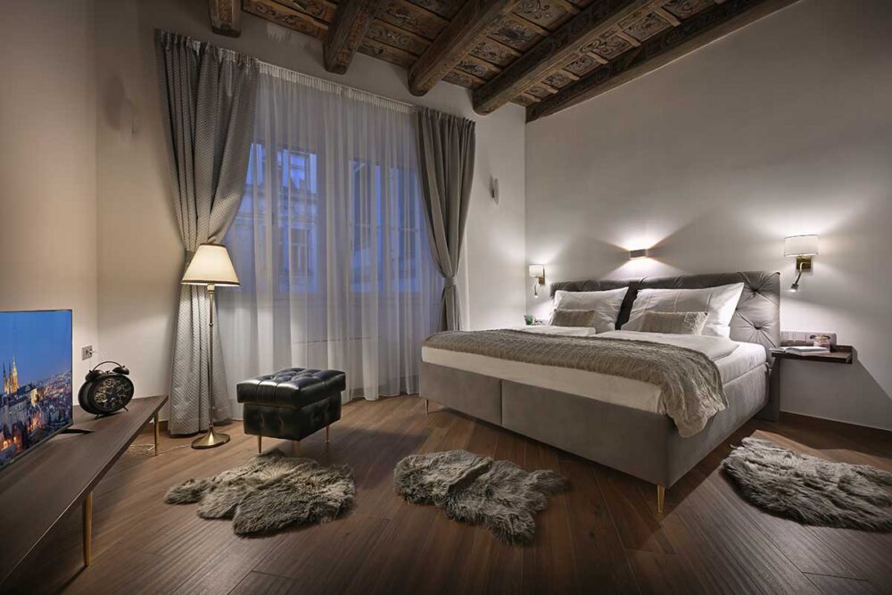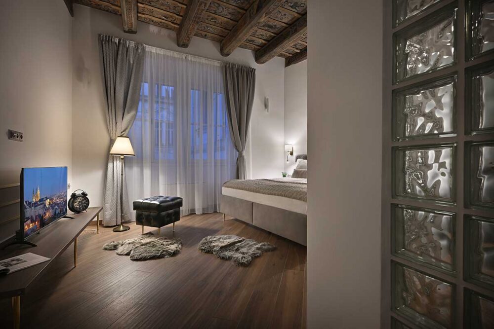 Soothing tones, warm wood accents, and subtle references to Smetana’s life and work create an atmosphere of tranquility and cultural richness. Ideal for quiet evenings, creative reflection, or simply enjoying the rhythm of Prague.