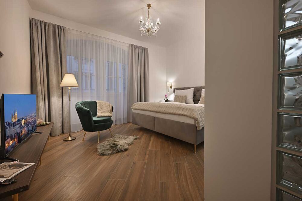 Step into timeless luxury in our Charles IV Apartment, a beautifully designed space inspired by the grandeur of Emperor Charles IV. Nestled in the heart of Prague city, this elegant room blends medieval charm with modern comfort, offering a regal retreat for travelers who appreciate history and sophistication.