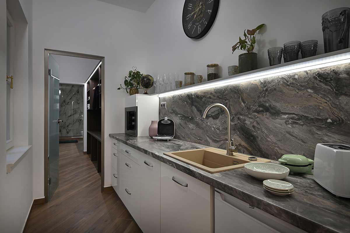 - Kitchen with cooktop, Coffee Machine, Dishwasher, Fridge, MInibar