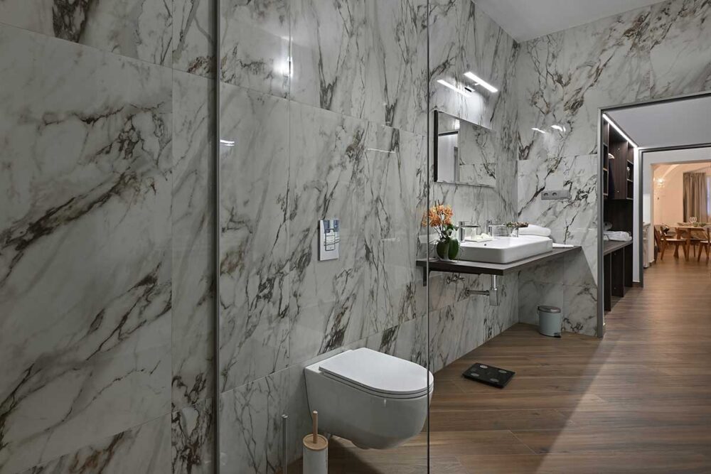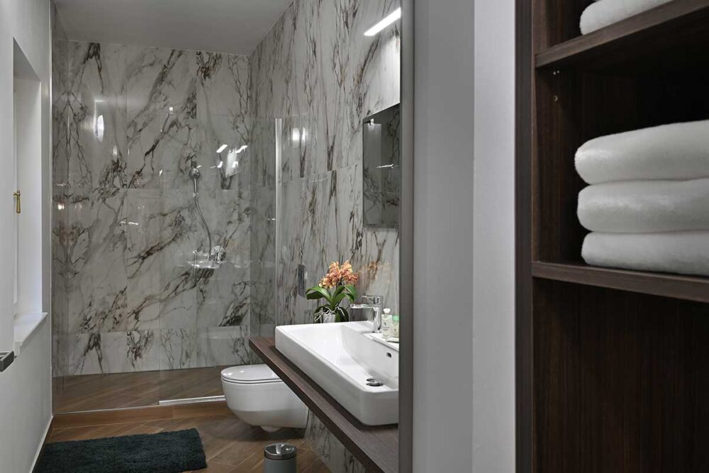- En-suite luxury bathroom with marble finishes and a walk-in rainfall shower