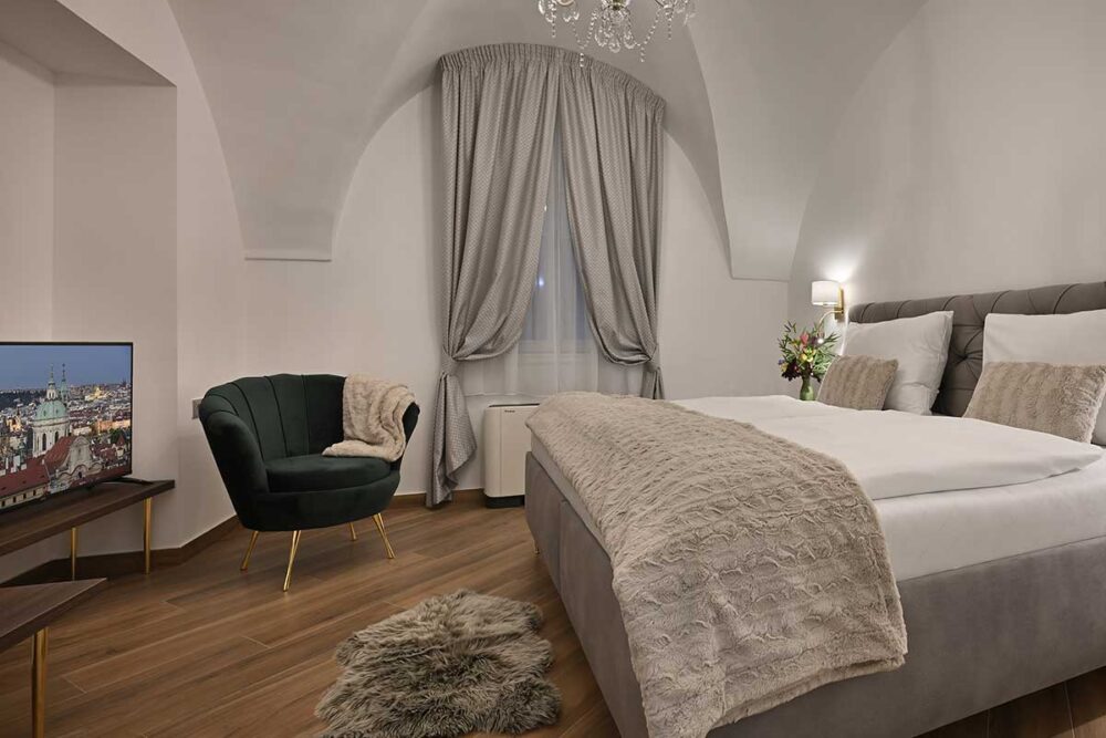 Steeped in atmosphere, this apartment channels Rudolf II’s Prague—a place of mystical beauty and intellectual intrigue. Expect dark woods, gold accents, and hidden design details inspired by alchemy, astronomy, and fine art.