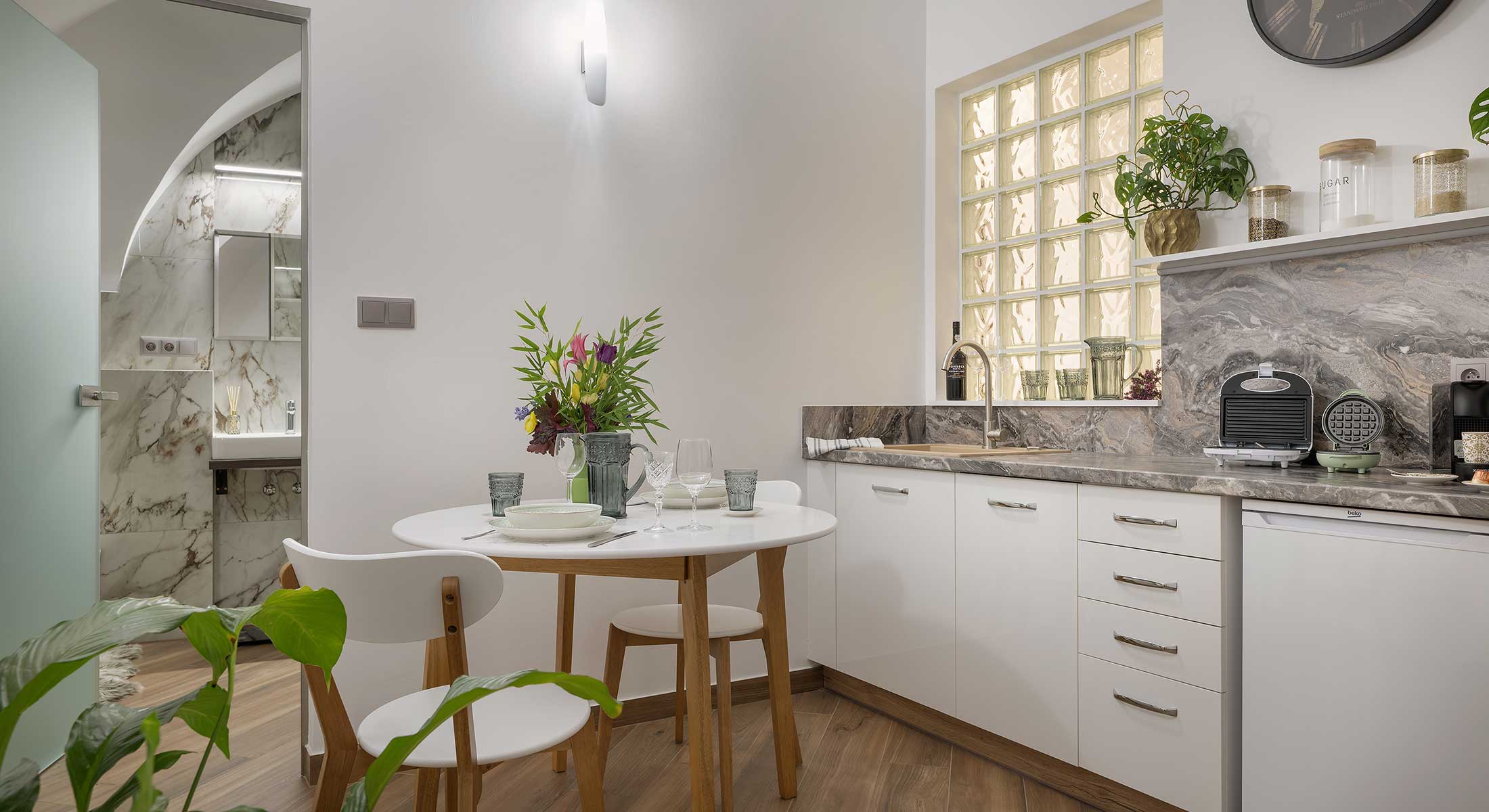 Durchdrungen von Atmosphäre spiegelt das Apartment die geheimnisvolle Schönheit und intellektuelle Faszination von Rudolfs Prag wider. Freuen Sie sich auf dunkle Hölzer, goldene Akzente und versteckte Designelemente, inspiriert von Alchemie, Astronomie und klassischer Kunst.